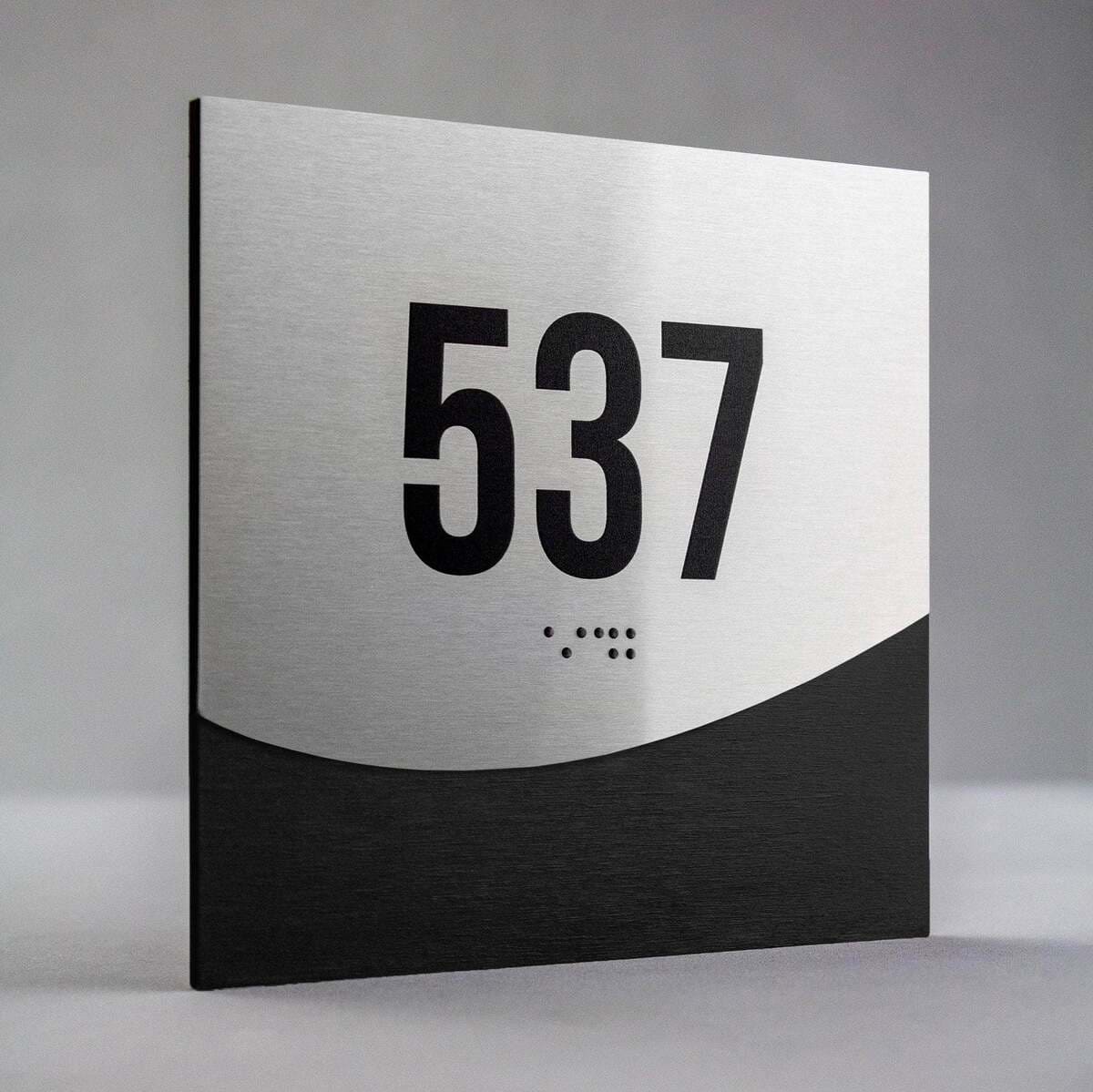 Hotel room number sign 537 with Braille - "Jure" Design