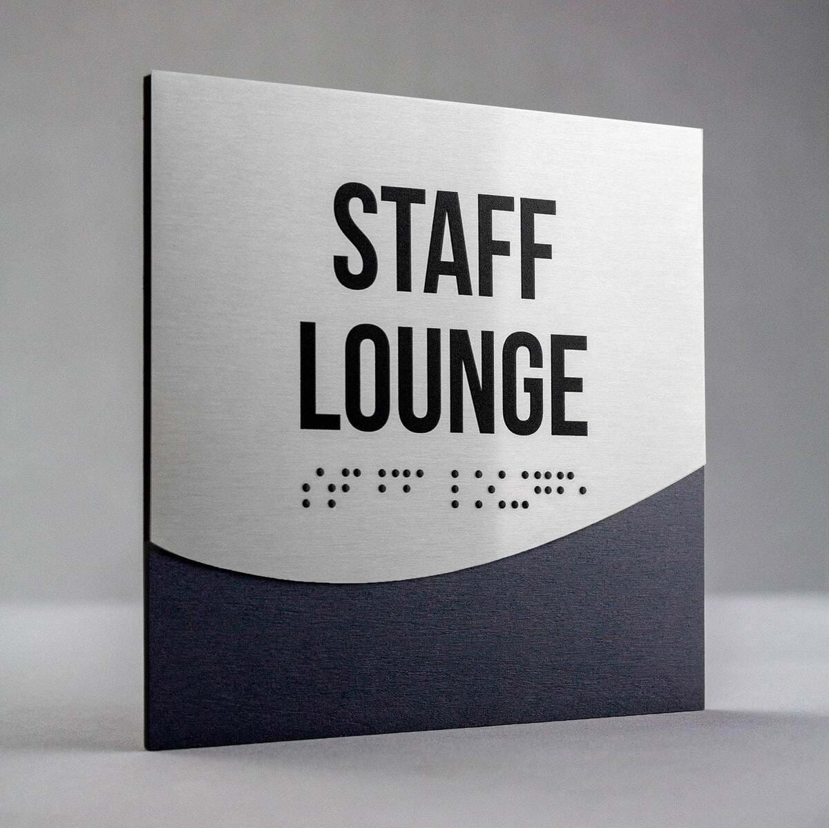 Sleek and long-lasting, this staff lounge sign is designed to offer a professional and warm feel to workplace interiors. With two-layer construction — natural wood and stainless steel — it achieves warmth coupled with contemporary minimalist style, making it ideal for offices, hotels, healthcare settings, or educational facilities.