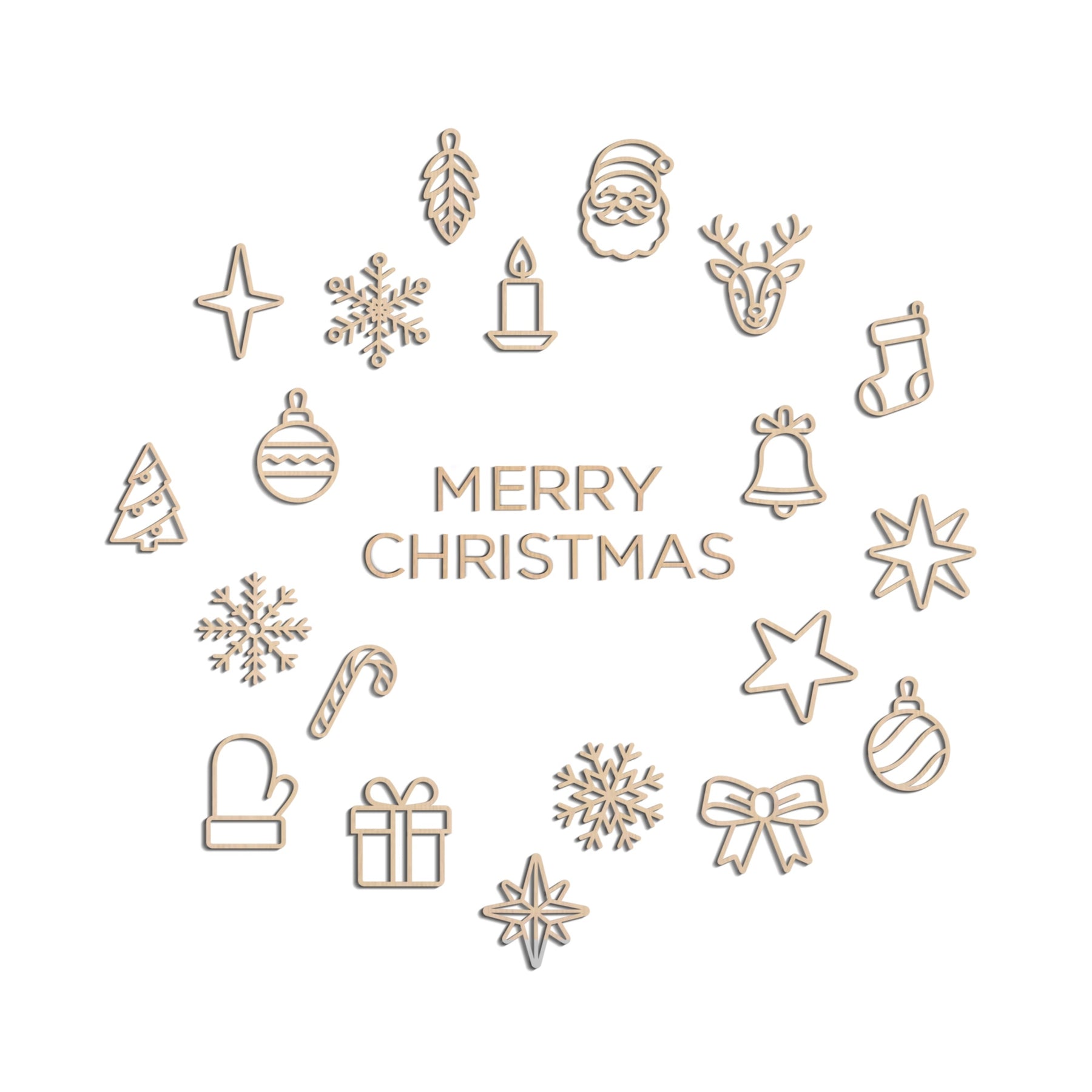 Acrylic Christmas Ornaments Set (20 Pc): Wall, Window & Tree Decor — “Thin Christmas” Design